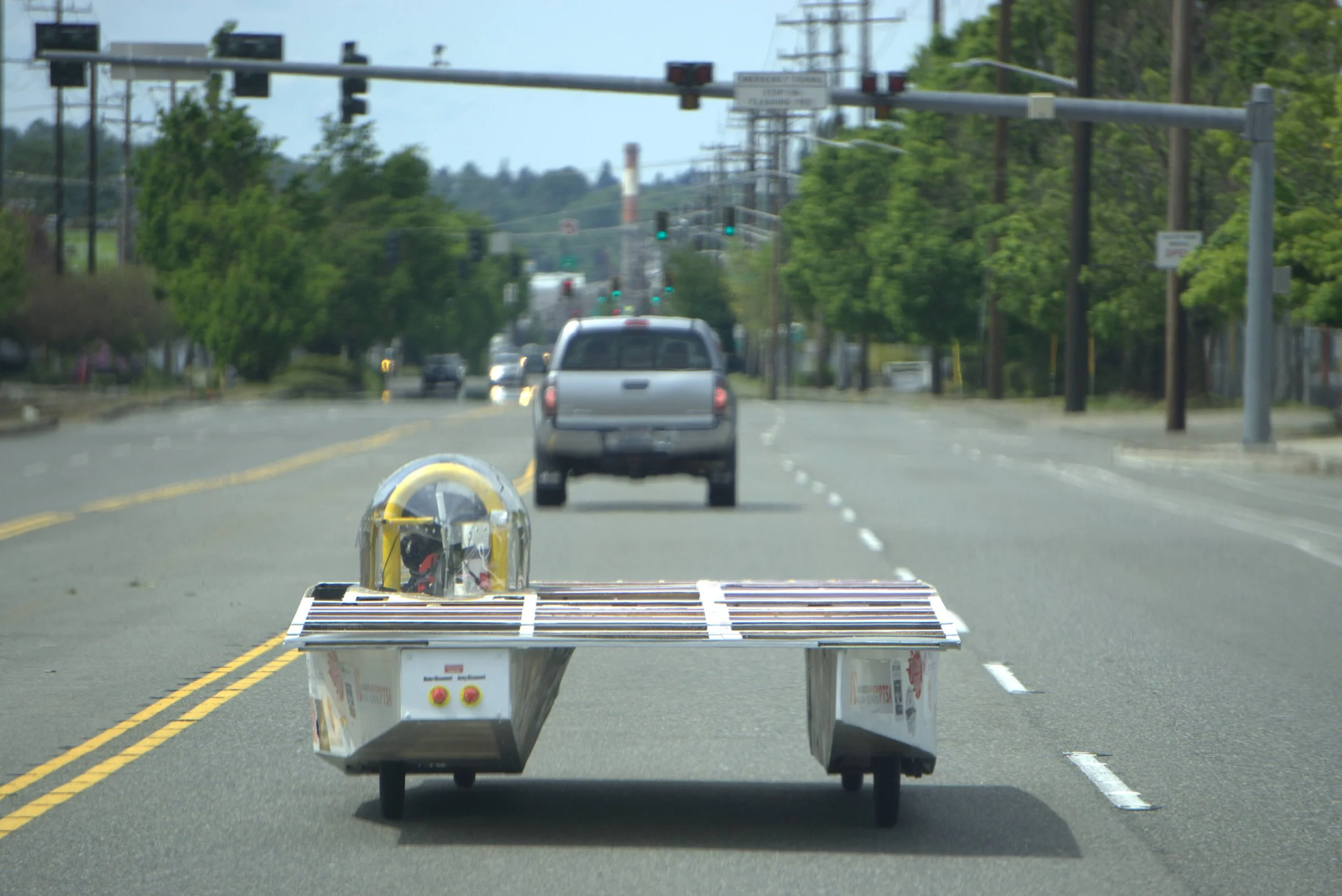 La Cucaracha was our first catamaran car. We chose this design due to the stability that it offered, as well as the amazing amount of solar cells we could fit on the top, all while having great aerodynamics.