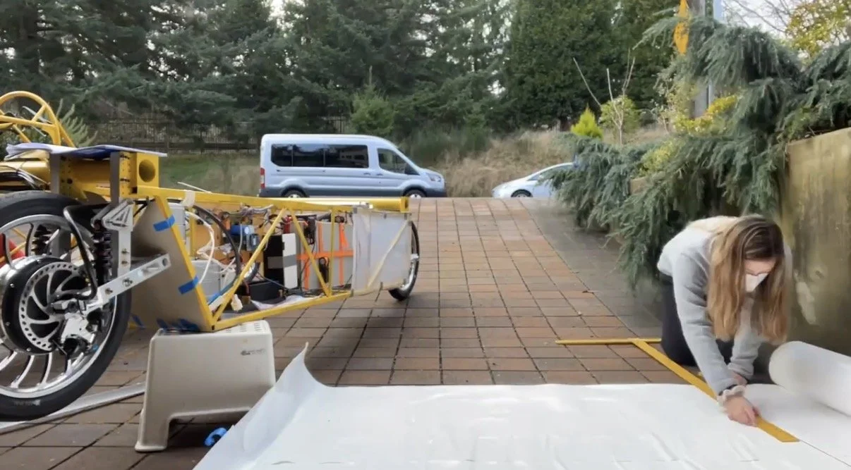 One amazing thing about this car was that we used such a simple way to get the aerodynamics. By using airplane fabric in some areas, and plywood in the flat sections we were able to attain significantly better aerodynamics than our 2019 car using light, simple, cheap materials.
