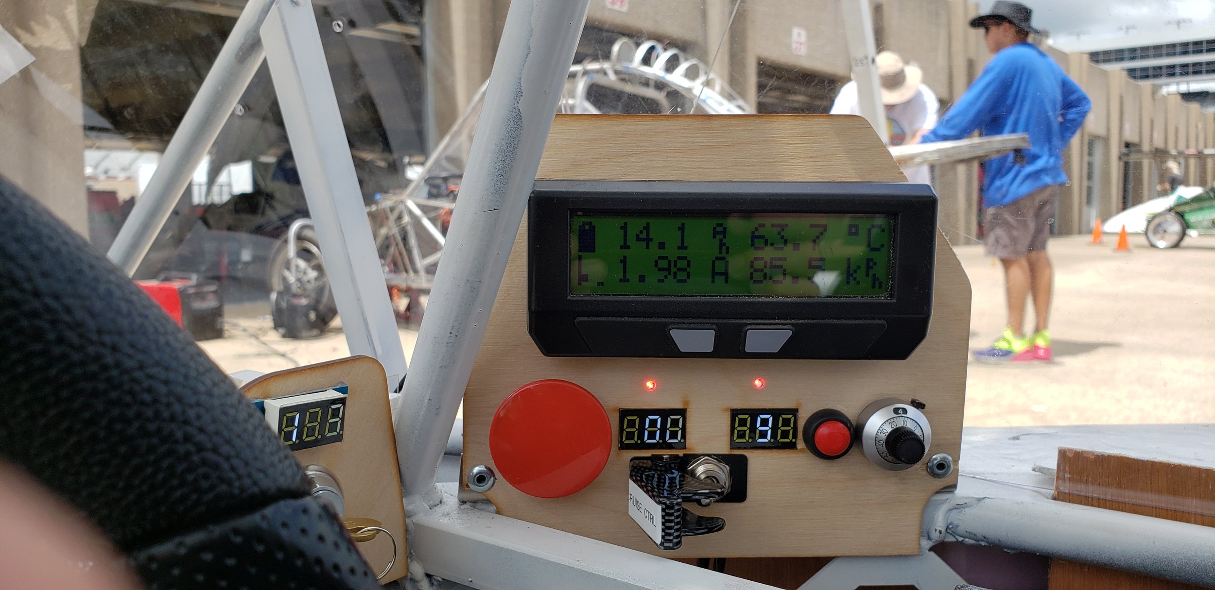 Very early on, we learned of the importance of telemetry. A lot of development was done on this car in telemetry, much of which would be reused on future cars (notably Jimmy and La Cucaracha). With hardware based around a Cycle Analyst and phone network Raspberry Pi telemetry, we developed our grafana based visualization system this year, allowing us to evaluate the car and collect good data.