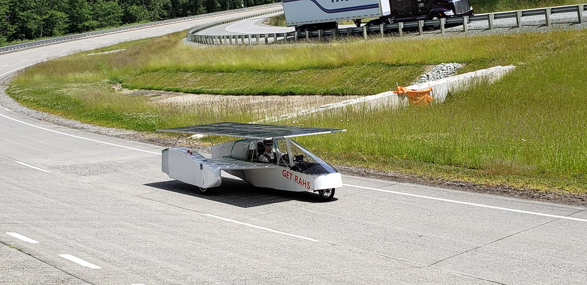 By late May we had begun working on our aerodynamics, and again, it would be simple. Airplane fabric and thin pieces of wood made up the aerodynamics and this kept development time and cost down. By June and early July we were testing on a sponsor’s testing track, verifying the predictions made by the strategy team, while many team members studied to rules and made sure everything was in order. By the time the car shipped out for Texas, over a thousand miles of high speed testing were completed, all systems were checked, and the car was ready to go.